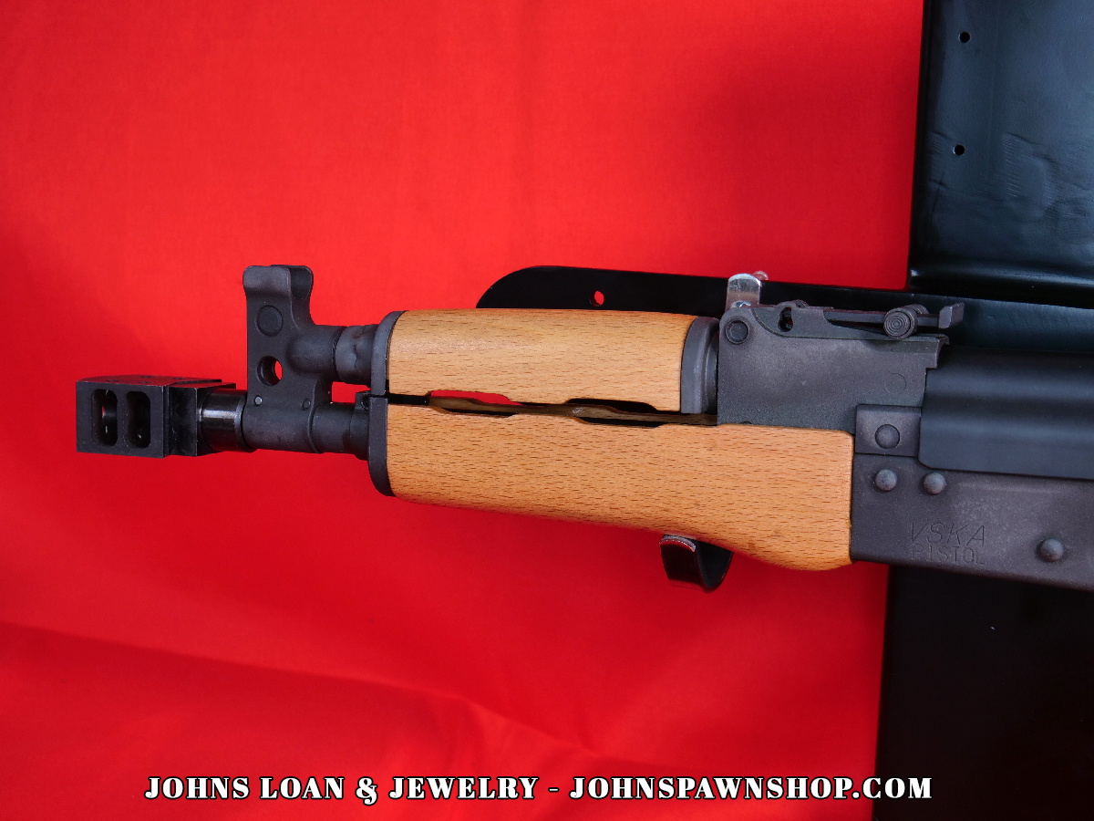 This sexy beast is the VSKA semi auto 7.62×39 pistol from Century Arms. Basically a Romanian Draco in every sense of the word, it comes with a 30 round magazine, rubber grip, and original wood upper and lower handguards. Even though it looks full size, it still considered a pistol. The original parkerized finish is in good shape, with some light marks from use. The bore is in excellent shape as well.